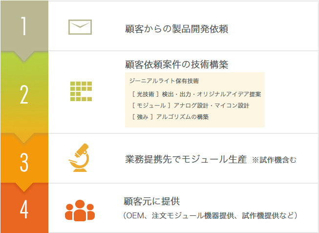 - 顧客元に提供(OEM、注文モジュール機器提供、試作機提供など)