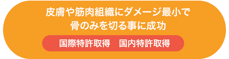 GENIAL BONELASERは主に生体の硬組織の切断を目的とした開発中の次世代機器です。大阪市内の病院の医師から「切り口を傷めず、再接合が容易なメスが欲しい」という要望を聞き、間もなくメスの研究を開始しました。レーザーは切り口が傷まないのが特徴です。